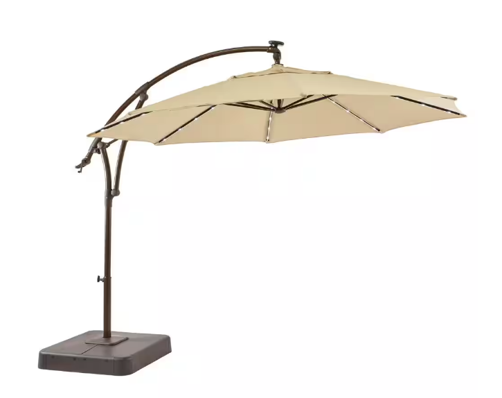 Take Your Patio Space to the Next Level with the Hampton Bay 11 ft. Cantilever Aluminum and Steel Solar LED Offset Outdoor Patio Umbrella